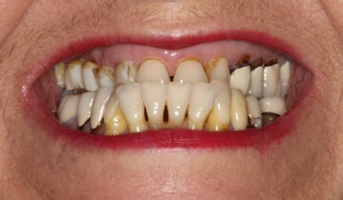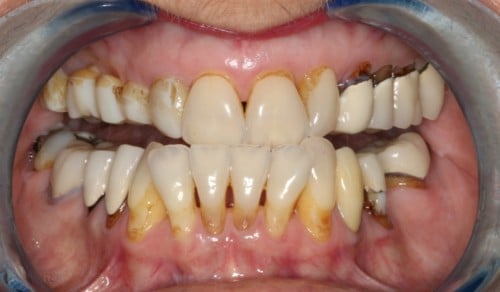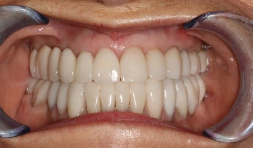 This patient came to us because she was losing teeth due to her improper bite and she did not want implants.